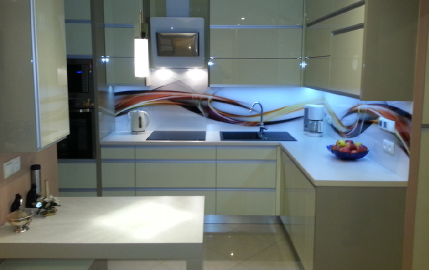Zajmujemy się również tworzeniem eleganckich rozwiązań ze szkła w kuchniach. Proponujemy estetyczne szklane panele naścienne wykonane z odpornego na ciepło i hartowanego szkła w różnej kolorystyce.
